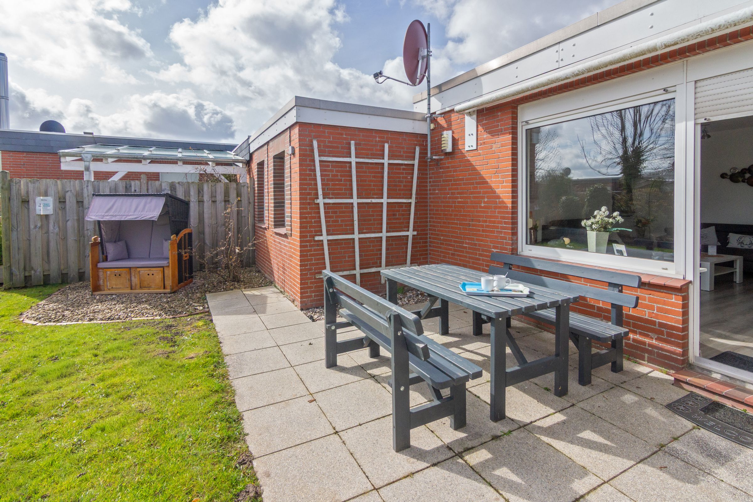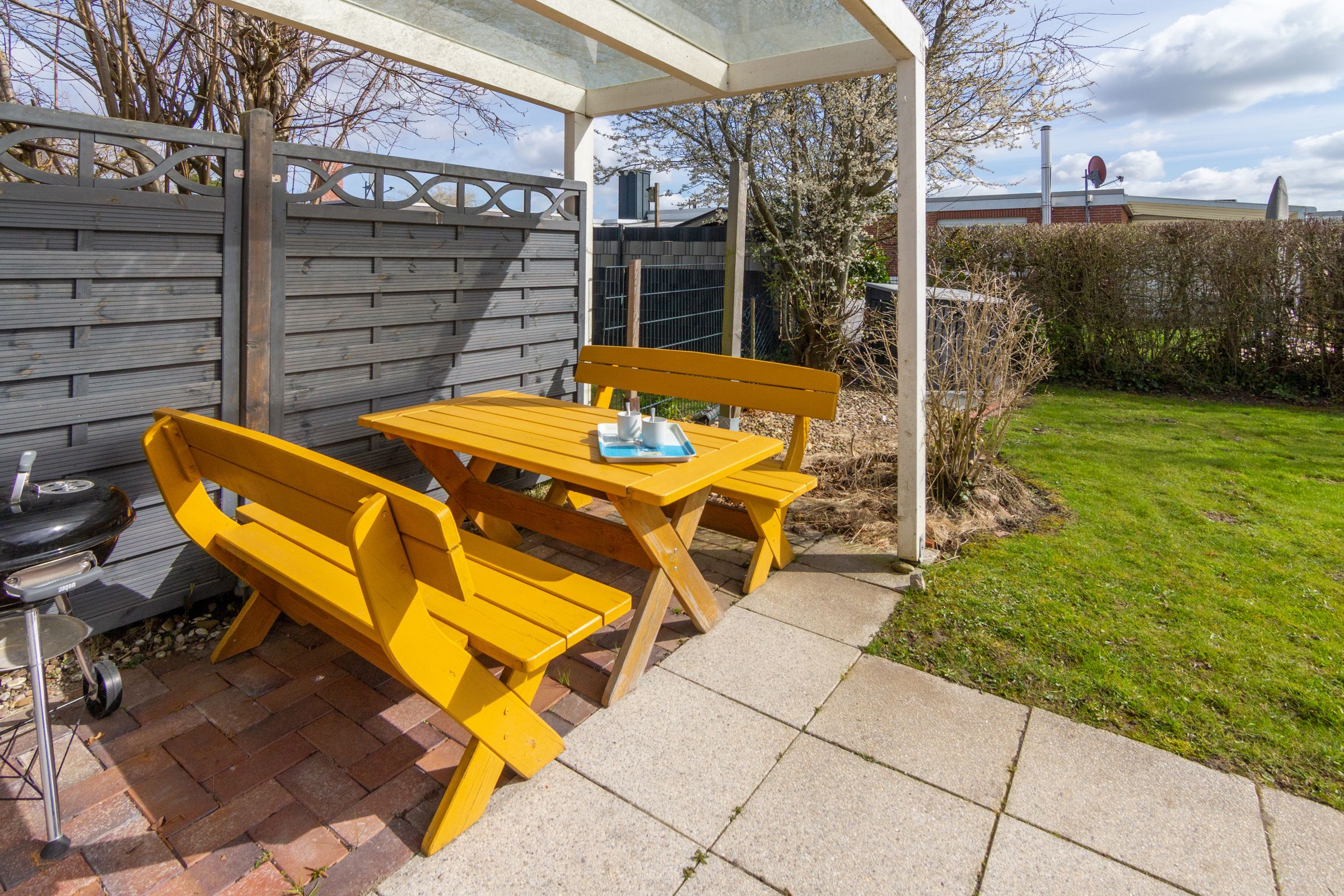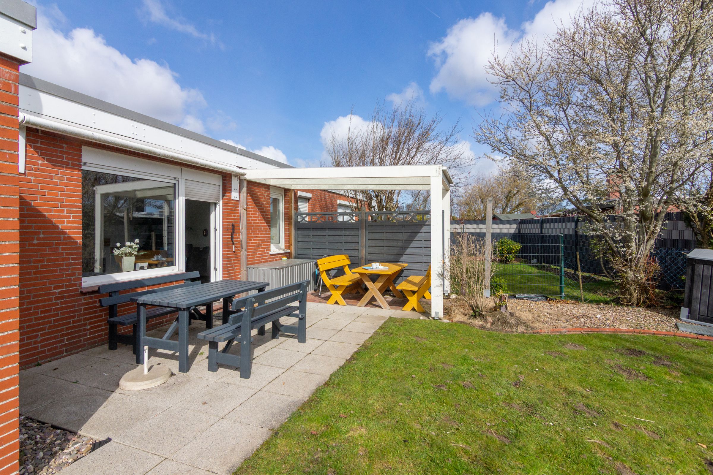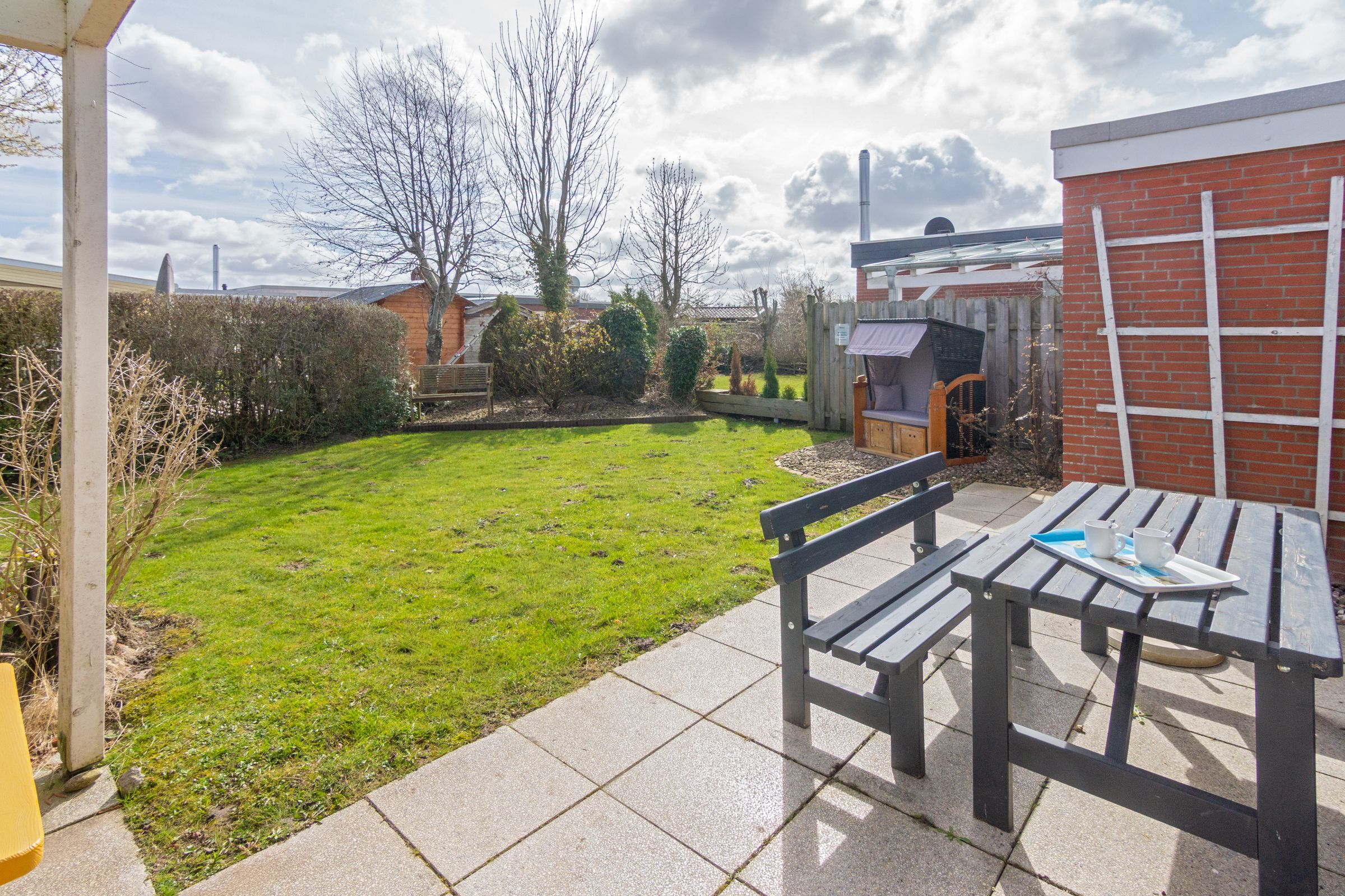 Eine Terrasse mit angrenzendem Garten bietet Ihnen die Möglichkeit, entspannte Stunden im Freien zu genießen. Vor dem Bungalow befindet sich ein PKW-Stellplatz, der Ihnen eine bequeme Anreise ermöglicht.