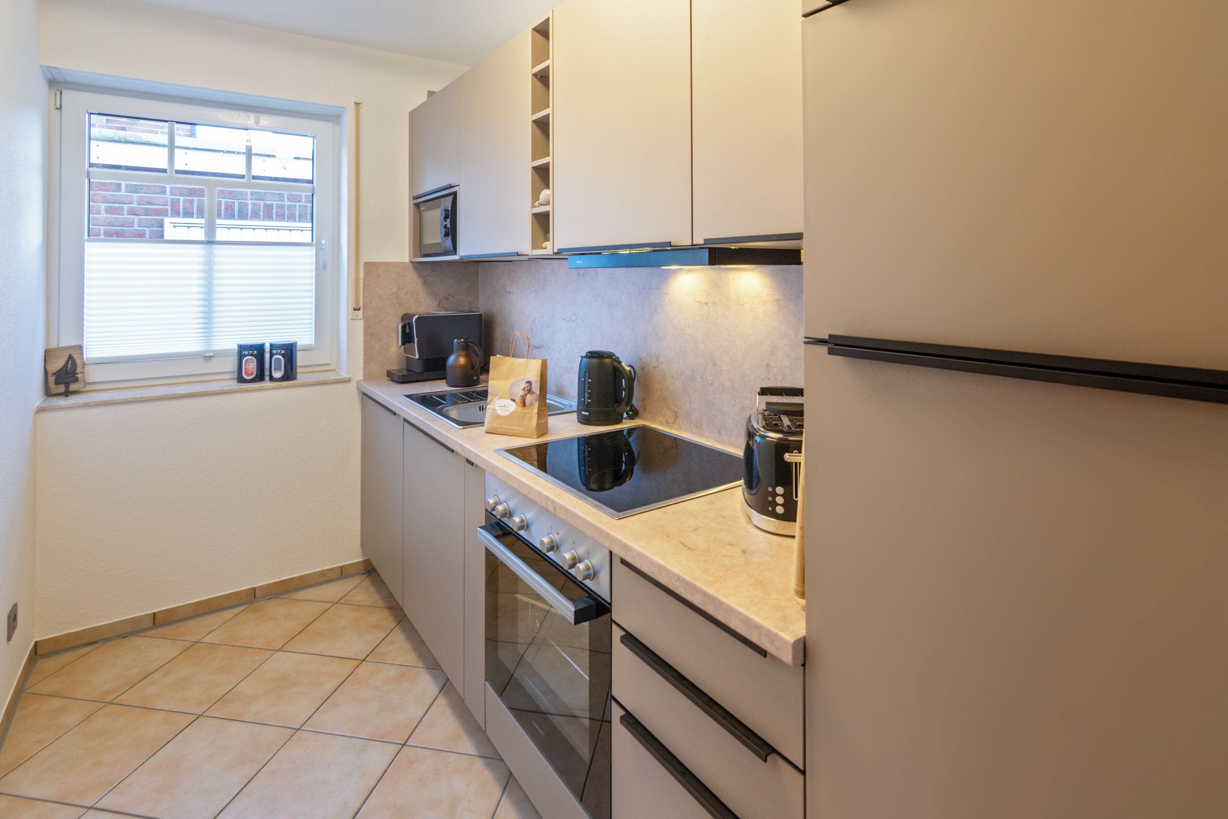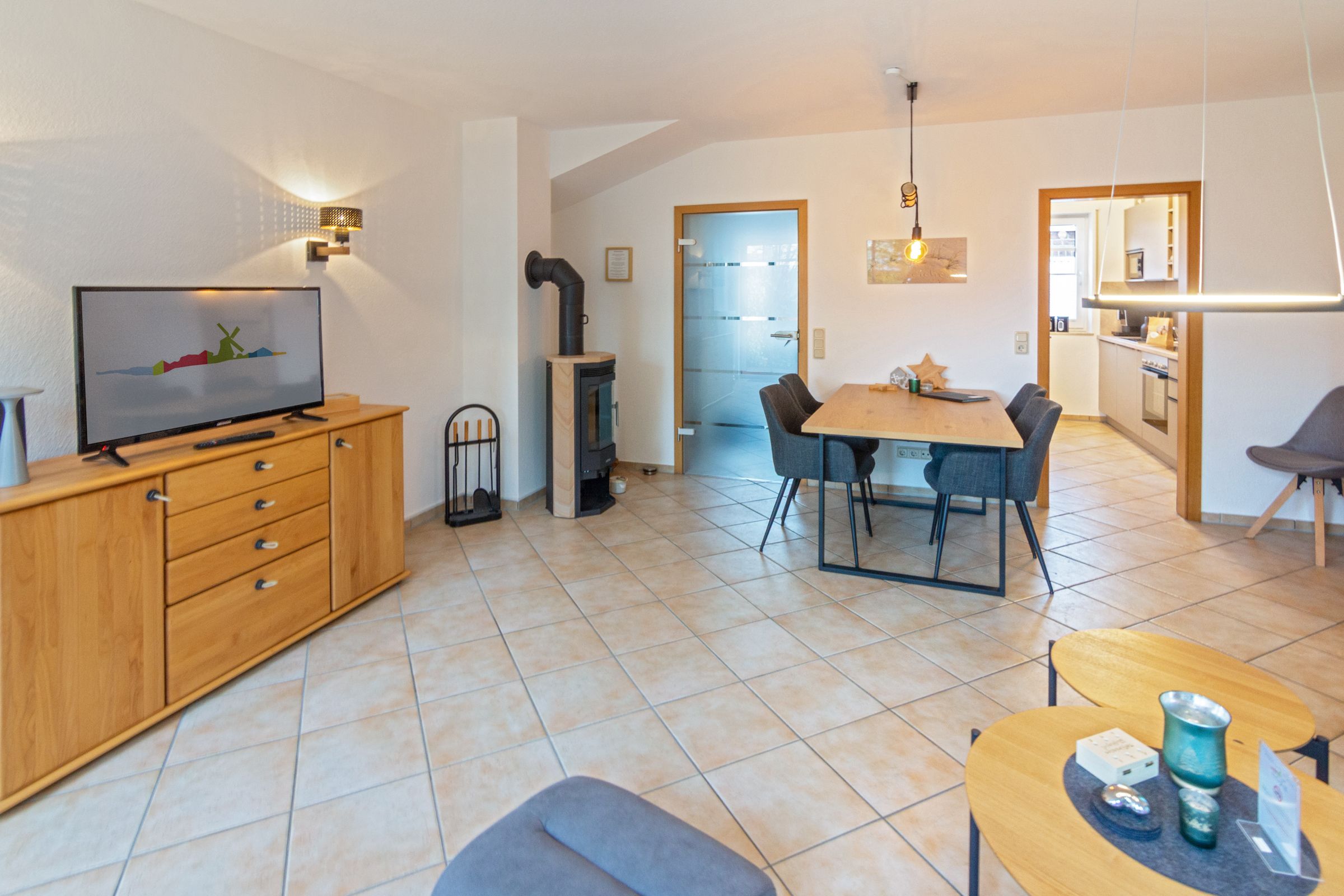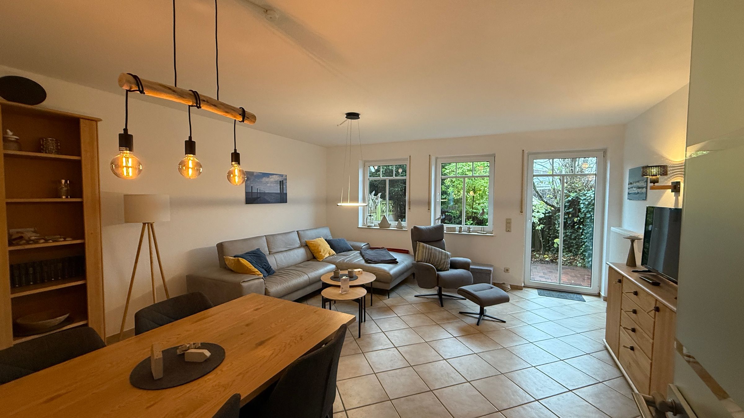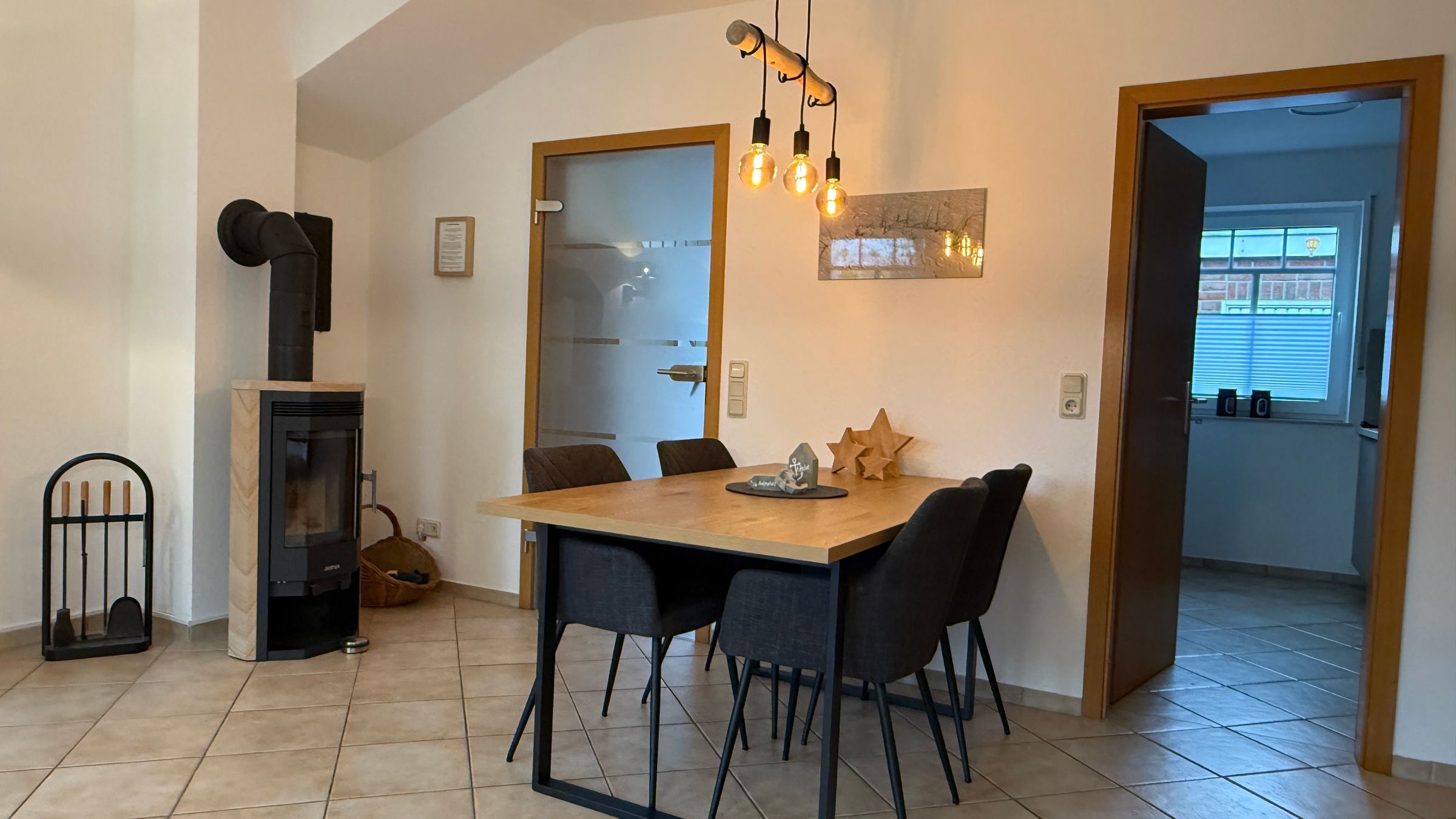 Das gepflegte Reihenhaus in Dornumergrode verfügt im Erdgeschoss über einen Wohn- und Essbereich mit separater, voll ausgestatteter Küche und ein Duschbad mit WC. Im Obergeschoss befindet sich ein Schlafzimmer mit einem Doppelbett, ein weiteres Schlafzimmer mit zwei Einzelbetten und ein Wannenbad mit WC. Über eine gut begehbare Treppe gelangen Sie ins ausgebaute Dachgeschoss. Hier befindet sich ein weiteres Einzelbett. Zum Haus gehört eine Terrasse und ein eigener PKW-Stellplatz.
